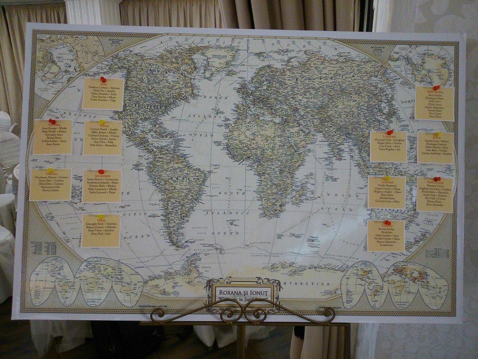 La intrarea la restaurant puteti instala o schema a meselor super personalizata tematicii si gustului vostru.